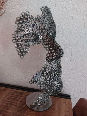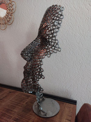 Verschillende mogelijkheden voor zowel torso als de voet. Voet in overleg. Is ook hangend te krijgen of in blankstaal.