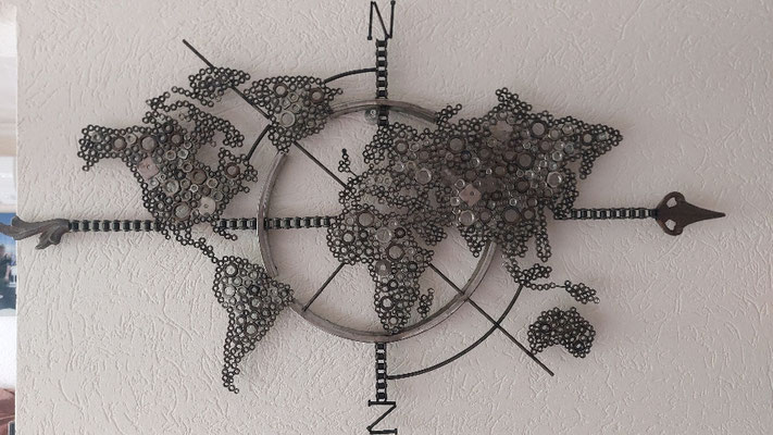 Foto 4 46x43cm wereldklok met 3 tijdzones. VERKOCHT